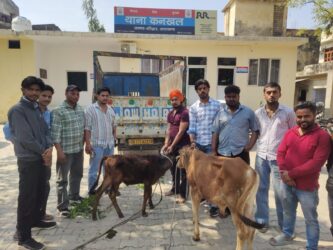 दो गोवंश पिकअप में ले जा रहे युवकों को पकड़कर पुलिस को सौंपा
