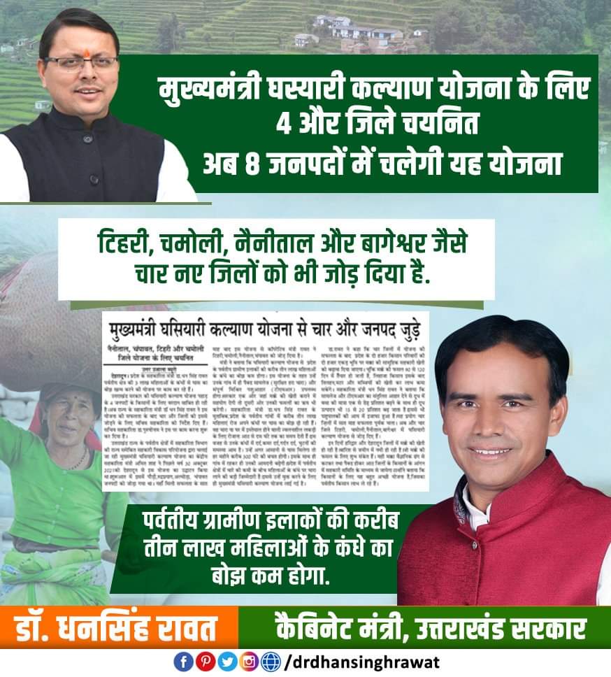 मुख्यमंत्री घस्यारी कल्याण योजना में प्रदेश के चार और जिलों का चयन किया गया है। इनके साथ ही अब जनपद के 8 जनपदों में इस योजना का लाभ लाभार्थियों को मिलेगा।