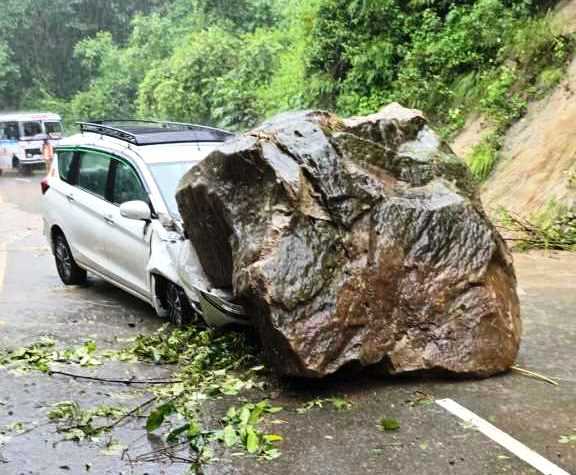 आमपडाव के पास एक भारी बोल्डर अचानक सड़क पर चल रही गाड़ी पर आ गिरा। इस गाड़ी में हरिद्वार ऋषिकुल आयुर्वेद कॉलेज के डॉ नरेश चौधरी और जिला स्वास्थ्य विभाग में तैनात वरिष्ठ प्रशासनिक अधिकारी सुभाष के अलावा श्याम कुमार सवार थे। तीनों को हल्द्वानी अस्पताल में भर्ती कराया गया है। उनकी हालत खतरे से बाहर बतायी गई है।