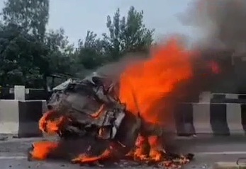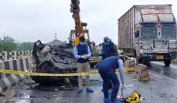 पुलिस के अनुसार, एक वाहन को ओवरटेक करने के दौरान पीछे से ट्रक ने कार में टक्कर मार दी। टक्कर लगने के बाद कार डिवाइडर से जा टकराई और उसमें तुरंत आग लग गई। आग इतनी तेजी से फैली की कार में सवार लोगों को बाहर निकलने का मौका नहीं मिला।