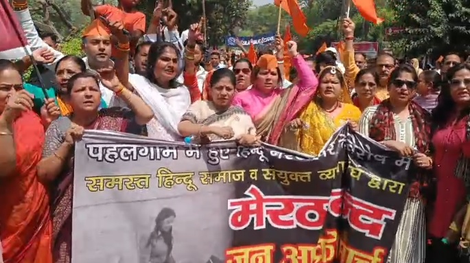 बड़ी संख्या में लोग पाकिस्तान के खिलाफ नारेबाजी करते हुए सड़कों पर उतर आए। हिंदू संगठनों के आह्वान पर मेरठ बंद के दौरान मुस्लिम बाहुल्य इलाकों में भी बंद का असर देखने को मिला।