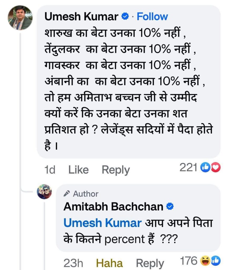 न्यूज 127. खानपुर विधायक की एक पोस्ट बड़ी तेजी से वायरल होकर चर्चा का विषय बनी है। दरअसल इस पोस्ट में उमेश कुमार ने सदी के महानायक अमिताभ बच्चन से एक पोस्ट कर सवाल किया था। इस पोस्ट पर अब अमिताभ बच्चन ने विधायक उमेश कुमार से सवाल पूछ लिया है। देखें क्या है पोस्ट, क्या पूछा सवाल:—