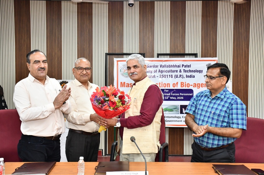 यह प्रशिक्षण कार्यकम कुलपति प्रो. त्रिवेणी दत्त, सरदार बल्लभभाई पटेल कृषि एवं प्रौद्योगिक विश्वविद्यालय, मेरठ, के दिशा निर्देशन में किया जा रहा है। इस अवसर पर कुलसचिव ने अपने सम्बोधन में बताया कि रक्षा मंत्रालय, भारत सरकार द्वारा संचालित यह प्रशिक्षण कार्यकम बहुत ही सराहनीय है। जैविक नियंत्रण नुकसानदायक कीटों के प्रबन्धन के लिए एक उत्तम विधा है। निदेशक शोध ने बताया कि कीटनाशकों के उपयोग से कैंसर जैसी बीमारियों लगातार बढ़ रही है, जैव नियंत्रण से हम कीटनाशकों के उपयोग को कम कर सकते है।