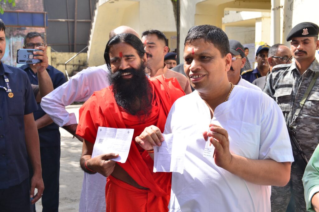 बाबा रामदेव और आचार्य बालकृष्ण ने किया मतदान, लोगों से की ये अपील