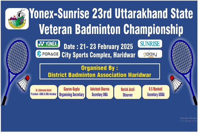 23वीं उत्तराखंड वेटरन स्टेट बेडमिंटन चैंपियनशिप का उदघाटन हरिद्वार रूड़की विकास प्राधिकरण के उपाध्यक्ष अंशुल सिंह हरिद्वार के सिटी स्पोर्टस कॉम्लेक्स में 21 फरवरी 2025 को सुबह 11 बजे करेंगे। इस प्रतियोगिता में हिस्सा लेने के लिए 13 जनपदों से करीब 240 खिलाड़ी पहुंच चुके है। चैंपियनशिप में 35 वर्ष से 75 प्लस आयु वर्ग के महिला एवं पुरुष खिलाड़ी सिंगल्स, डबल्स, और मिक्स डबल्स मैच में प्रतिभाग करेगें। तीन दिनों तक चलने वाली इस प्रतियोगिता में रोमांचक मुकाबले होगे।