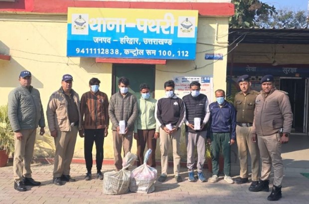 निर्देश पर एक्टिव हुई गौवंश संरक्षण स्कवाड हरिद्वार व थाना पथरी की संयुक्त टीम ने चैकिंग/दबिश के दौरान ग्राम बोड़ाहेड़ी में स्थित अतीक की लाइसेंसी मीट की दुकान से करीब 150 किलो गौमांस व गौकशी उपकरणों के साथ गोकशी में संलिप्त 06 आरोपित को मौके से गिरफ्तार किया। मीट की दुकान की आड़ में चल रहे गोरखधंधे में पकड़े गए सभी आरोपित के खिलाफ थाना पथरी पर उत्तराखण्ड गोवंश संरक्षण अधिनियम के अन्तर्गत अभियोग पंजीकृत किया गया। विधिक कार्यवाही अमल में लाते हुए आरोपियों को मा0 न्यायालय पेश किया जा रहा है। आरोपियों के नाम अतीक पुत्र जमील, अब्दुल्ला पुत्र महबूब, मुजम्मिल पुत्र अब्दुल हमीद, शाकिब पुत्र शकील, रहमान पुत्र ताहिर, तमरेज पुत्र जमी सभी ग्राम जौरासी, रूडकी हरिद्वार