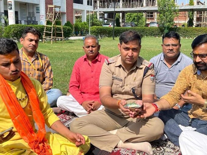 बहादराबाद थाने में शिव मंदिर का भूमि पूजन, एसओ नितेश शर्मा ने की पूजा