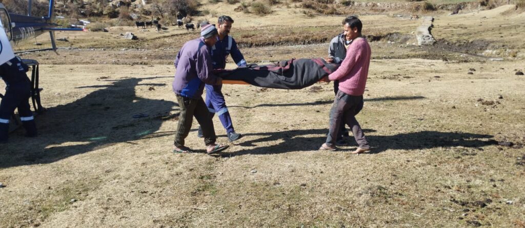 चमोली के सुदूरवर्ती गांव डुमक के रहने वाले भवान सिंह गंभीर रूप से पैरालाइज है। विगत कुछ समय से उनका इलाज ऋषिकेश एम्स में चल रहा था। उनकी बीमारी अत्यंत गंभीर होने और चिकित्सकों द्वारा उनको घर ले जाने की सलाह दी गई और एम्स से डिस्चार्ज किया गया। पैरालाइज मरीज की स्थिति नाजुक होने और डुमक गांव सड़क से करीब 6 किलोमीटर दूर होने पर मरीज को स्वयं घर तक पहुंचाना मुश्किल था। इस पर उनके परिजनों ने हैली एंबुलेंस की मांग की।