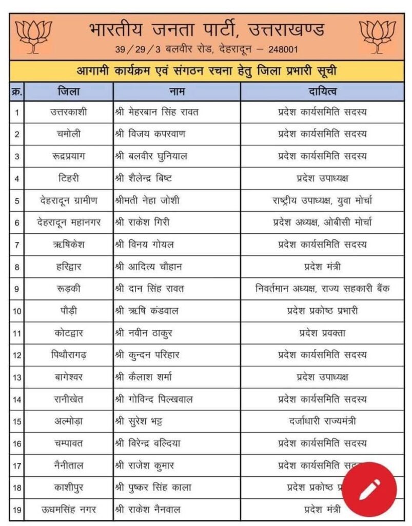 न्यूज127 भाजपा के प्रदेश मंत्री आदित्य चौहान को हरिद्वार का जिला प्रभारी नियुक्त किया गया है। जिसके बाद उनके समर्थकों में खुशी का माहौल है। आदित्य चौहान को लोकसभा चुनाव के दौरान भी हरिद्वार की जिम्मेदारी दी गई थी। इस चुनाव में उन्होंने भाजपा को जीत दिलाने में महती भूमिका अदा की थी।