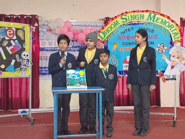 धूम सिंह मेमोरियल पब्लिक स्कूल में कक्षा 3 से 5 तक के छात्रों के लिए आयोजित विज्ञान क्विज़ प्रतियोगिता शानदार उत्साह और जबरदस्त जोश के साथ संपन्न हुई। प्रतियोगिता का मुख्य उद्देश्य बच्चों में वैज्ञानिक सोच, टीमवर्क और आत्मविश्वास को बढ़ावा देना था, जिसमें विद्यार्थियों ने बढ़-चढ़कर हिस्सा लिया। ब्रेव हाउस, पीस हाउस, करेज हाउस और विक्ट्री हाउस के प्रतिभागियों ने शुरुआत से ही प्रतियोगिता को रोमांचक बना दिया।