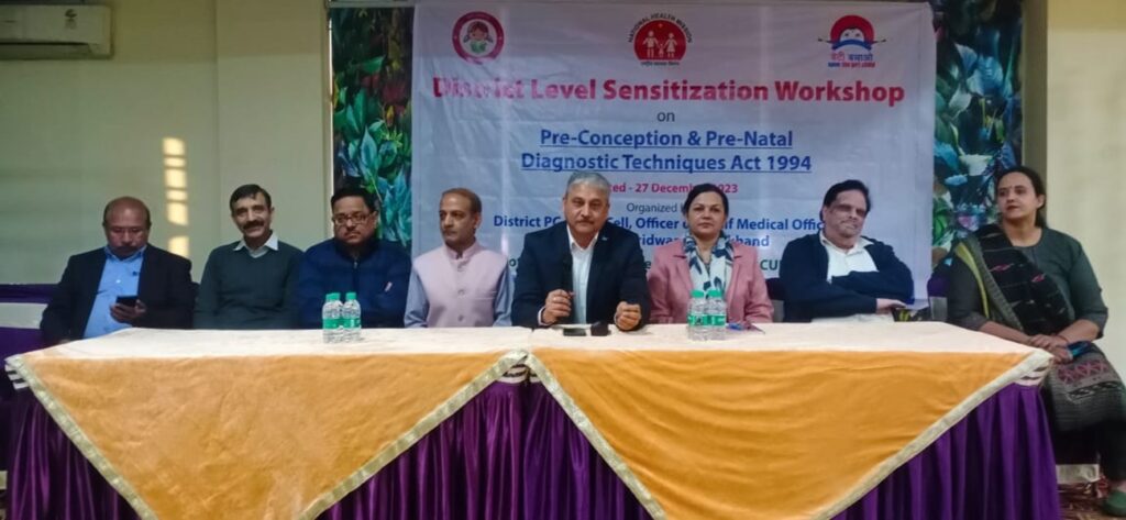 काजल राजपूत. मुख्य चिकित्सा अधिकारी डॉ मनीष दत्त की अध्यक्षता में बुधवार को कन्या भ्रूण हत्या , भू्रण लिंग जांच रोकने और अधिनियम की जागरूकता को लेकर तहसील हरिद्वार के समस्त अल्ट्रासाउंड केंद्रों के चिकित्सकों के साथ एक कार्यशाला का आयोजन किया गया। कार्यशाला में पीसीपीएनडीटी की धाराओं का कढ़ाई से पालन करने की सलाह दी गयी । कार्यशाला में मौजूद सभी चिकित्सकों को सीएमओ द्वारा प्रसव पूर्व लिंग जांच नहीं करने की शपथ की याद भी दिलाई।