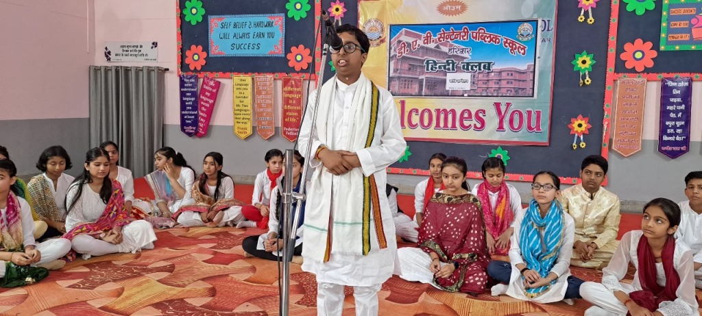 डीएवी सेंटेनरी पब्लिक स्कूल के बहुउद्देशीय सभागार में हिंदी विभाग के द्वारा कवि सम्मेलन प्रतियोगिता का आयोजन कक्षा आठवीं व नवीं के विद्यार्थियों के लिए किया गया। कवि सम्मेलन प्रतियोगिता में कक्षा आठवीं व नवी के विद्यार्थियों ने बढ़-चढ़कर प्रतिभाग किया। कार्यक्रम में नवोदित कवि-कवयित्रियों की मनमोहक प्रस्तुति देखते ही बनती थी। कवि सम्मेलन दो चरणों में प्रस्तुत किया गया- स्वरचित रचनाएं व संकलित रचनाएं।