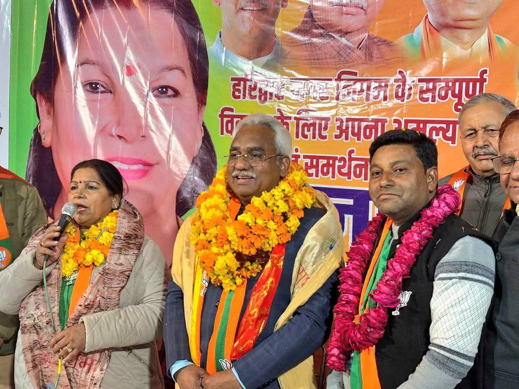 चुनाव प्रचार के दौरान वार्ड नं. 12 निर्मला छावनी में पार्षद प्रत्याशी ईष्टदेव सोनी के समर्थन में आयोजित विशाल जनसभा को विधायक मदन कौशिक ने संबोधित किया। इस दौरान उन्होंने जनता से अपील करते हुए कहा कि नगर निगम में भाजपा का बोर्ड बनेगा तो शहर के चहुंमुखी विकास के रास्ते खुलेंगे। उन्होंने भारतीय जनता पार्टी के पक्ष में मतदान करने की अपील जनता से की। मेयर प्रत्याशी किरण जैसल ने समर्थन और स्नेहमयी आशीर्वाद प्रदान करने के लिए सभी लोगों का हृदय से आभार प्रकट किया। उन्होंने कहा कि इस जनसभा में उपस्थित लोगों का जोश और उत्साह देख कर यह स्पष्ट है कि इस बार नगर निगम चुनाव में हरिद्वार की देवतुल्य जनता ने कमल खिलाकर भाजपा को विजयी बनाने का संकल्प लिया है।