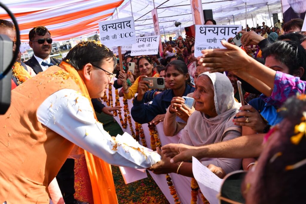 मुख्यमंत्री ने कहा कि विकास के साथ ही हमनें राज्य के हित में कई ऐसे ऐतिहासिक फैसले लिए जो उत्तराखंड को एक बेहतर और श्रेष्ठ उत्तराखंड बनाने में निश्चित ही अपना योगदान दे रहे हैं। उन्होंने कहा कि हमारी सरकार ने समान नागरिक संहिता को लागू किया जिससे मातृशक्ति को कई कुरीतियों और उत्पीड़नों से मुक्ति मिलेगी। हमने देश में सबसे कड़ा नकल विरोधी कानून लागू किया जिससे कि पेपर लीक पर लगाम लग गई। अब पारदर्शिता से सभी परीक्षाएं हो रही हैं। चयनित अभ्यर्थियों को नियुक्ति पत्र देने के कार्यक्रम प्रतिदिन आयोजित हो रहे हैं। हमारी सरकार ने लैंड जिहाद के खिलाफ मजबूती से मुहिम चलाकर अब तक 5000 एकड़ से अधिक सरकारी जमीनों से गैरकानूनी कब्जे को खत्म किया। उन्होंने कहा कि उत्तराखंड देवभूमि है, जो भी यहां अशांति पैदा करने की कोशिश करेगा उसको किसी भी हालत में बख्शा नहीं जाएगा। उन्होंने कहा कि इसके साथ ही हमारी सरकार ने जबरन धर्मांतरण के खिलाफ सख्त कानून बनाया है क्योंकि हम अपने प्रदेश की डेमोग्राफी के साथ छेड़छाड़ बिल्कुल बर्दाश्त नहीं कर सकते। धर्मांतरण विरोधी कानून हमारी देवभूमि की संस्कृति और पवित्रता की रक्षा करेगा।