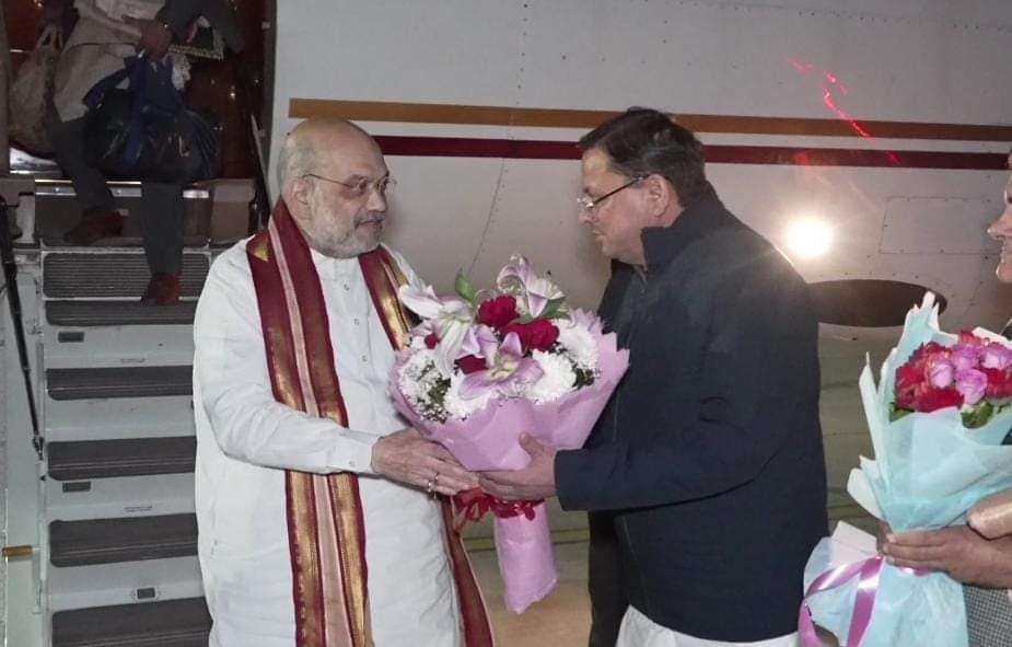 केंद्रीय गृह मंत्री अमित शाह देर शाम उत्तराखंड दौरे पर जौलीग्रांट एयरपोर्ट पहुंचे जहां मुख्यमंत्री पुष्कर सिंह धामी ने उनका स्वागत किया।