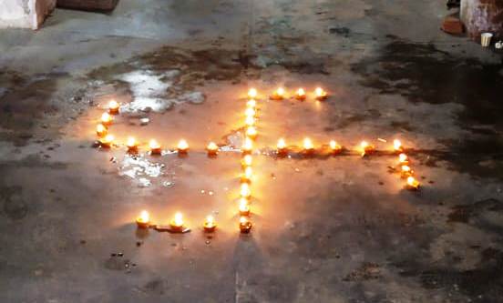 पल्लवपुरम फेज दो स्थित चौहान मॉर्किट में सभी व्यापारियों ने दिन में जहां भंडारे का आयोजन किया वहीं शाम को दीपों से स्वास्तिक बनाकर रोशनी बिखेरी। इस दौरान उत्साह के साथ लोगों ने प्रभु श्रीराम का गुनगान किया। इस अवसर पर धर्मेंद्र चौधरी, सुधीर चौहान, नौशाद, सुदेश पाल, सुंदर पाल, दिनेश कुमार, अभिषेक चौधरी, दीपक आदि मौजूद रहे।