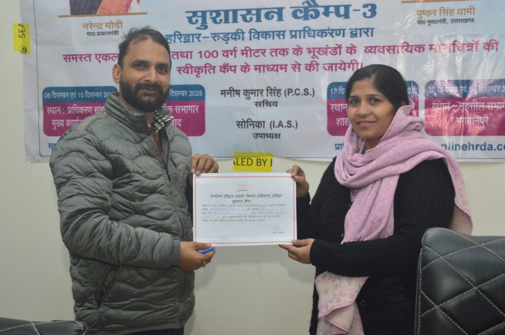 मुख्यमंत्री पुष्कर सिंह धामी के सरलीकरण, समाधान, निस्तारण एवं संतुष्टि के मंत्र को धरातल पर उतारते हुए हरिद्वार–रुड़की विकास प्राधिकरण ने तहसील भगवानपुर सभागार में सुशासन कैंप का सफल आयोजन किया। कैंप में आमजन की समस्याओं का त्वरित और पारदर्शी समाधान करते हुए एक ही दिन में 41 मानचित्रों का निस्तारण किया गया, जिसमें 16 मानचित्र स्वीकृत एवं 25 मानचित्र निर्गत किए गए।