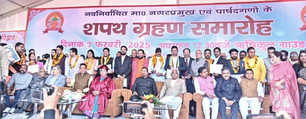 शपथग्रहण समारोह ऋषिकुल मैदान में आयोजित किया गया। सुबह साढ़े बारह बजे शुरू होने वाला शपथग्रहण समारोह देर से करीब दो बजे शुरू हुआ। मंच पर मौजूद निर्वाचित महापौर को जिलाधिकारी ने शपथ दिलायी। जिसके बाद पार्षदों को महापौर ने शपथ दिलायी। शपथ ग्रहण समारोह के दौरान नगर विधायक मदन कौशिक, रानीपुर विधायक आदेश चौहान, मेयर पति सुभाषचंद, पूर्व मेयर मनोज गर्ग, जिलाध्यक्ष संदीप गोयल, जिला उपाध्यक्ष विकास तिवारी, समेत तमाम भाजपा कार्यकर्ता और नगर निगम अधिकारी मौजूद रहे। शपथ लेने के बाद मेयर किरण जैसल सबसे पहले मायापुर मंदिर पहुंची और यहां पूजा अर्चना कर आशीर्वाद लिया। उसके बाद वह अपने कार्यालय पहुंची जहां उन्होंने पहली बार अपनी कुर्सी ग्रहण की।