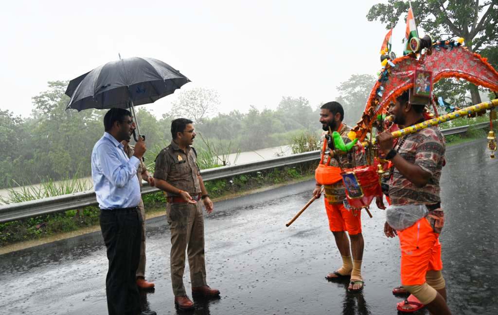 बारिश की बौछारों के बीच कांवड मार्ग पर निकले DM-SSP