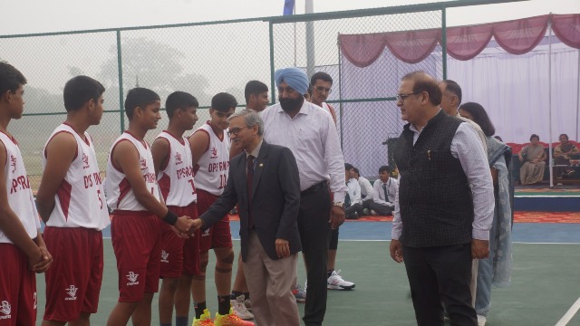 दिल्ली पब्लिक स्कूल रानीपुर हरिद्वार में द डीपीएस सोसाईटी नई दिल्ली के तत्वावधान में आज तीन दिवसीय जोन-3 द डीपीएस बॉस्केटबॉल ब्वाएज़ ओपन टूर्नामेंट 2024 का भव्य उद्घाटन किया गया। इस अवसर पर मुख्यअतिथि के रूप में भेल हरिद्वार के कार्यपालक निदेशक टी0 एस0 मुरली ने ध्वजारोहण किया तथा पीवीसी गुंजन शुक्ला, मेंबर अमित तिवारी एवं प्रधानाचार्य डॉ0 अनुपम जग्गा के साथ आकाश में गुब्बारे छोड़ कर टूर्नामेंट प्रारम्भ करने की घोषणा की। इस अवसर पर बच्चों ने सुंदर स्वागत गीत प्रस्तुत किए तथा स्कूल बैंड ने मधूर धुनों से सभी का मन मोह लिया। डीपीएस रानीपुर छात्र परिषद के सदस्य चिराग सिंघानिया ने सभी खिलाडियों ने खेल भावना की शपथ दिलाई।