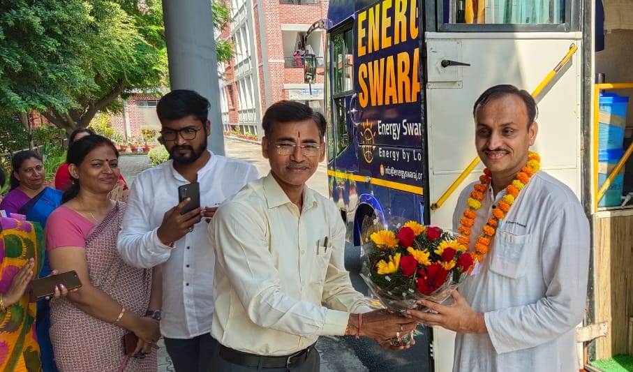 एनर्जी स्वराज की सौर ऊर्जा से चलने वाली बस को देखने के लिए विद्यार्थियों में बहुत उत्सुकता थी। इस बस में एसी, कूलर, पंखा, लाइट, टीवी, फ्रिज़, कम्प्यूटर, लाइब्रेरी, मंदिर, चार्जिंग प्वांइंट, पोर्टेबल बैड, छोटा सा बगीचा या यूँ कहें कि घर की जरूरत का सारा सामान मौजूद है। यह चलता-फिरता एक घर ही है, जो संचालित होता है सौर ऊर्जा से। इस बस के दरवाज़े पर एक नक्शा भी लगा हुआ था, जिसमें प्रोफेसर सोलंकी अपनी यात्रा के स्थानों का विवरण भी अंकित करते हैं। पर्यावरण की सुरक्षा जीवन की रक्षा का संदेश देती यह बस विद्यार्थियों के लिए सौर ऊर्जा का अधिकाधिक प्रयोग करने का आह्वान करती है। यह विद्यार्थियों के लिए एक नया व अनूठा अनुभव रहा।
