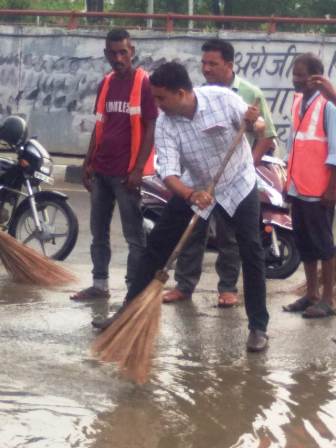 जब जल्दी से पानी की निकासी होती नहीं दिखी तो पार्षद विक्रांत ढाका ने सफाई कर्मचारियों के हाथ से झाडू ली और स्वयं ही झाडू से पानी को नाले की ओर करने लगे। यह सब करते हुए उन्होंने यह नहीं देखा कि लोग क्या कहेंगे, उन्होंने केवल अपनी सच्चे मन से शिव भक्तों के लिए इस काम को करने बीड़ा स्वयं ही उठाया। हालांकि कुछ ही देर बाद वहां रेपिड ट्रेन का कार्य कर रही लेबर पहुंच गई और उन्होंने पानी की निकासी के लिए नाले के पास जगह बनायी।