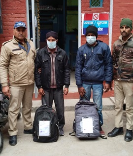 1- अभियुक्त कुलवन्त सिह पुत्र महेन्द्र सिह निवासी कुआखेडा थाना बडापुर जिला बिजनौर उ0प्र0 व महेन्द्र सिह पुत्र जसवन्त निवासी उपरोक्त को स्थान ऋषिकुल पुल के पास से अवैध 60 लीटर कच्ची शराब के साथ