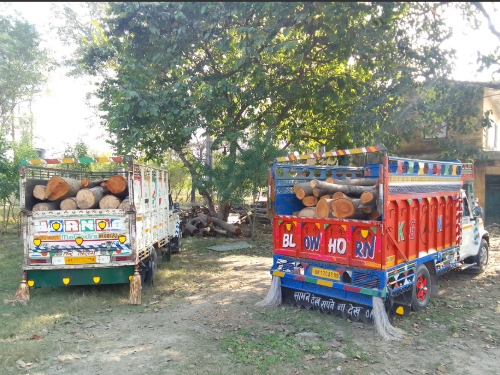 को देखकर फरार हो गए। पीछा करने पर वाहनों को छोड़कर आरोपी अंधेरे का फायदा उठाकर खेतों के रास्ते फरार हो गए। वन विभाग ने लकड़ी से लदे वाहनों को कब्जे में ले लिया। वाहनों के नंबर के आधार पर आरोपियों की तलाश शुरू कर दी है। वन विभाग की सक्रियता के चलते वन माफियाओं के हौंसले पस्त हो गए। बुधवार की रात को थाना पथरी क्षेत्र के फेरूपुर में वन माफिया रात के अंधेरे में सिंबल और तून के हरे भरे पेड़ों को चोरी छिपे से काट रहे थे। इस दौरान वन विभाग के डिप्टी रेंजर गजेंद्र सिंह और वन बीट अधिकारी ठाकुर सत्यवीर सिंह टीम के साथ गश्त करते हुए मौके पर पहुंच गए। वन विभाग के अधिकारियों की टीम को देखकर वन माफिया फरार हो गए। गाड़ी में लदे अवैध रूप से काटे गए पेड़ों को लेकर भागने लगे। टीम ने तस्करों का पीछा शुरू कर दिया, तब आरोपी जट बहादरपुर में दो पिकअप वाहन छोड़कर फरार हो गए। वन विभाग के रेंजर शैलेंद्र सिंह नेगी ने बताया कि अवैध रूप से काटे गए पेड़ों को कब्जे में ले लिया गया है। गाड़ी के अंदर से तीन सिम्बल और दो तून के पेड़ बरामद हुए हैं। वाहनों को सीज कर दिया गया है। जिन्हें नगर वन में भेज दिया गया है। आरोपियों के खिलाफ मुकदमा दर्ज कराया जाएगा। फिलहाल पेड़ काटने वाले सभी आरोपियों को चिह्नित किया जाएगा। और अवैध रूप से काटे गए पेड़ों का भी कैसे काटा जाएगा।