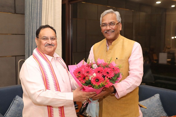 पूर्व मुख्यमंत्री त्रिवेंद्र सिंह रावत ने नई दिल्ली में भारतीय जनता पार्टी के राष्ट्रीय अध्यक्ष जेपी नड्डा से शिष्टाचार भेंट की। इस दौरान उन्होंने ऐतिहासिक G-20 सम्मेलन के सफलतापूर्वक संपन्न होने तथा महिलाओं के सम्मान, उनके सशक्तिकरण को ध्यान में रखते हुए मोदी सरकार द्वारा पारित महिला आरक्षण विधेयक की राष्ट्रीय अध्यक्ष को शुभकामनाएं दीं। इसके अलावा दोनों के बीच समसामयिक विषयों पर चर्चा भी हुई।