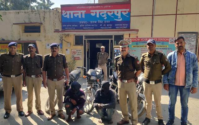 थाना गदरपुर पुलिस ने दो शातिर चोरों को पकड़कर उनके पास से चोरी की चार मोटरसाइकिल बरामद की है। पुलिस गिरफ्तार अभियुक्तों ने पूछताछ कर इनके अन्य साथियों के बारे में जानकारी जुटाने की बात कह रही है।