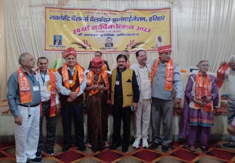 हरिद्वार। गवर्नमेंट पेंशनर्स वेलफेयर ऑर्गेनाइजेशन की हरिद्वार शाखा ने रविवार को 20वां वार्षिक उत्सव हरिद्वार स्थित एक धर्मशाला में वी0के0 गुप्ता की अध्यक्षता में मनाया। कार्यक्रम का शुभारंभ मुख्य अतिथि मुख्य कोषाधिकारी नीतू भंडारी, विशिष्ट अतिथि उप कोषाधिकारी विनय कुमार तथा संगठन के प्रदेश अध्यक्ष बच्ची सिंह रावत, प्रदेश महामंत्री बाली सिंह चौहान एवं वरिष्ठ समाजसेवी जगदीश लाल पाहवा ने संयुक्त रूप से मां सरस्वती की प्रतिमा के सम्मुख दीप प्रज्वलित कर किया।