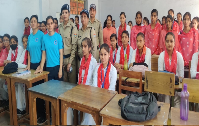 दिनांक 05/04/2023 को कोतवाली रानीपुर क्षेत्र चिन्मय कॉलेज में 70 बालिकाओं को प्रशिक्षित टीम “गौरा शक्ति” द्वारा महिला अपराधों व उनके विधिक अधिकारों के प्रति जागरूक किए जाने के साथ-साथ self defence techniques का प्रशिक्षण दिया गया। जिसमें आलोक मिश्रा प्रिंसपल, चिन्मय डिग्री कॉलेज व स्टाफ व अन्य 70 बालिकाओं द्वारा प्रशिक्षण में भाग लिया।