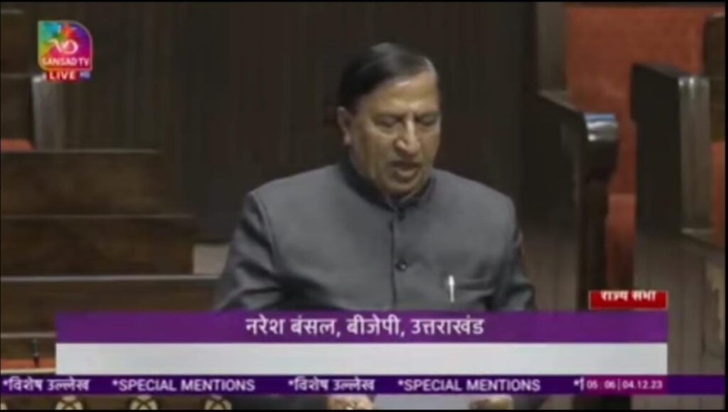 सासंद राज्य सभा डा.नरेश बंसल ने सदन मे उठाई उत्तराखंड के हित की महत्वपूर्ण मांग