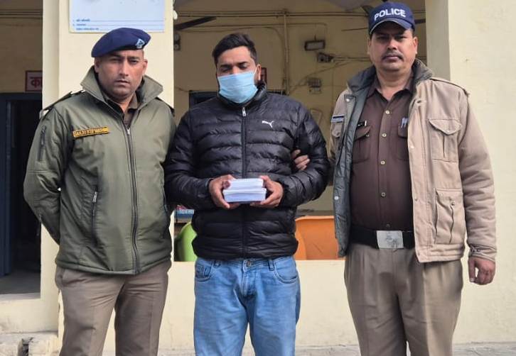 थाना कनखल पुलिस द्वारा नशीले पदार्थो की अवैध तस्करी/बिक्री पर प्रभावी अंकुश लगाये जाने हेतु थाना स्तर पर गठित पुलिस टीम द्वारा दिनांक 09-02-2025 की रात्रि में चैकिंग के दौरान थाना क्षेत्र के किशनपुर से जमालपुर मार्ग पर शिवकुमार उर्फ मोनित निवासी ग्राम नूरपुर पंजनहेड़ी थाना कनखल जनपद हरिद्वार क़ो 122 ग्राम अवैध चरस व इलेक्ट्रॉनिक तराजू के साथ पकड़ा गया। अवैध चरस के साथ पकडे गये आरोपी के विरुद्ध थाना कनखल पर NDPS act में अभियोग पंजीकृत किया गया। पुलिस टीम में उ0नि0 चरण सिंह, कां0 गजय तोमर और कां0 प्रलव चौहान शामिल रहे।