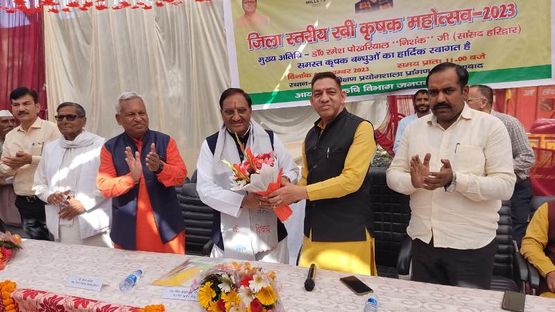 इससे पूर्व कृषक महोत्सव रबी-2023 में मुख्य उद्यान अधिकारी ओम प्रकाश सिंह, मुख्य पशु चिकित्साधिकारी डॉ0 योगेश शर्मा, ए0आर0 कोआपरेटिव पी0एस0 पोखरिया, आदि ने भी केन्द्र पोषित, राज्य पोषित तथा अन्य कौन-कौन सी योजनायें सरकार द्वारा कृषकों के हित में चलाई जा रही हैं, के सम्बन्ध में विस्तार से जानकारी दी। डॉ0 रमेश पोखरियाल निशंक ने इस मौके पर बहादराबाद स्थित मृदा परीक्षण प्रयोगशाला परिसर में कृषि, उद्यान एवं खाद्य प्रसंस्करण, पशुपालन, सहकारिता, रेशम विकास, कृषि विज्ञान केन्द्र, मत्स्य समाज कल्याण, गन्ना विकास, नाबार्ड, पंजाब नेशनल बैंक, जैविक कृषि, महिला एवं बाल विकास, ग्रामीण आजीविका मिशन, ग्रामीण उद्यम वेग वृद्धि परियोजना, राधे-राधे स्वयं सहायता समूह आदि विभागों/संस्थाओं द्वारा लगाये गये स्टॉलों का एक-एक करके अवलोकन किया तथा इन विभागों द्वारा चलाई जा रही जन-कल्याणकारी योजनाओं की विस्तार से जानकारी ली तथा अधिकारियों को उत्तरोत्तर प्रगति के लिये दिशा-निर्देश दिये।