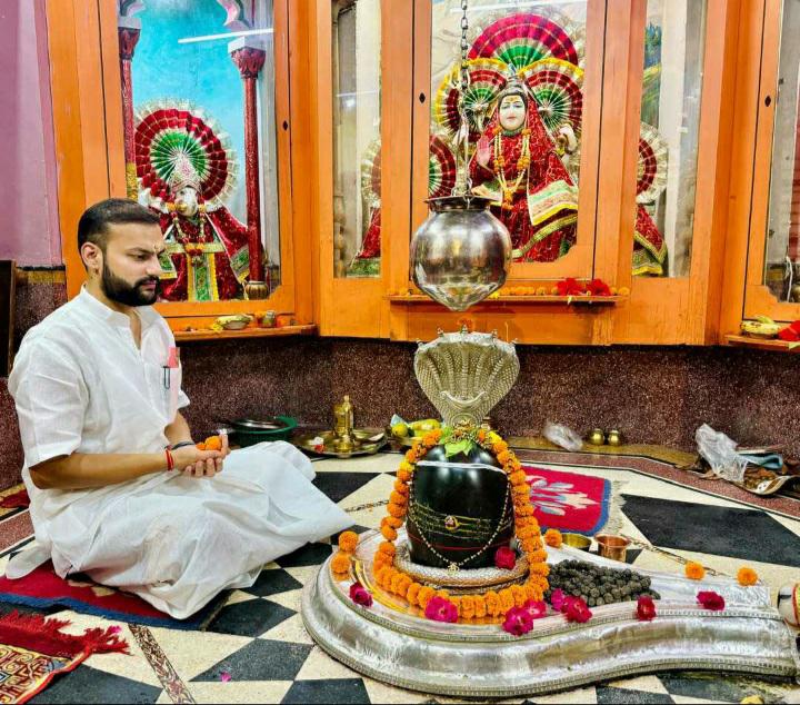हरिद्वार: युवा भारत साधु समाज के अध्यक्ष महंत शिवम् महाराज ने श्रावण मास के तीसरे सोमवार को भूपतवाला स्थित श्री चेतन ज्योति आश्रम में भगवान शिव का रुद्राभिषेक कर विश्व कल्याण की कामना की। इस दौरान मौजूद श्रद्धालु भक्तों को भगवान शिव की महिमा का सार समझाते हुए उन्होंने कहा कि त्रिनेत्रधारी देवों के देव महादेव भगवान शिव सृष्टि के सर्वशक्तिमान देव है जो भक्तों की सूक्ष्म आराधना से ही प्रसन्न होकर उन्हें मनोवांछित फल प्रदान करते हैं। कोई भी दिन दुखी श्रद्धापूर्वक यदि दीनानाथ के दरबार में आ जाता है उसका कल्याण अवश्य ही निश्चित है। महंत शिवम् महाराज ने कहा कि श्रावण पर्यंत शिव उपासना करने से साधक को आरोग्य और सौभाग्य प्राप्त होता है। साथ ही समस्त शिव परिवार का आशीर्वाद भी साधक को मिलता है। उन्होंने कहा कि सनातन परंपरा में भगवान शिव की उपासना सभी रोग एवं संकटों को दूर कर मनचाहा वर प्रदान करने वाली है। भगवान शिव गृहस्थ जीवन के आदर्श माने जाते हैं। सच्चे मन से शिव उपासना करने पर परिवार में सुख शांति और समृद्धि बनी रहती है। इसीलिए श्रद्धापूर्वक सभी को भोलेनाथ की पूजा अर्चना करनी चाहिए। भोलेनाथ अपने भक्तों का संरक्षण कर उनका जीवन भवसागर से पार लगाते हैं। इस दौरान श्रवण कुमार, अनिल जोशी, गोपाल सिंह सहित कई श्रद्धालु भक्त उपस्थित रहे।