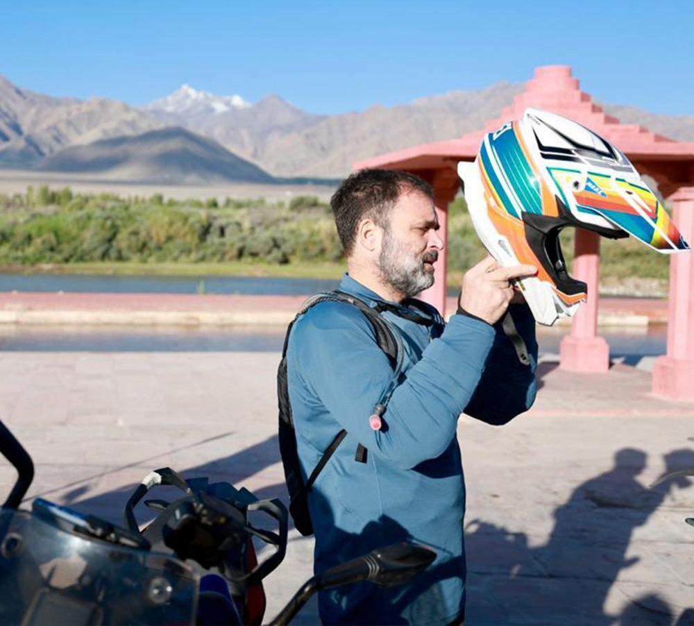 कांग्रेस सांसद राहुल गांधी कुछ फोटो सोशल मीडिया पर वायरल हो रही हैं। इन फोटो में वह बाइक पर राइड करते दिख रहे हैं। सभी फोटो में वह हैलमेट लगाए हुए है इसलिए चेहरा नहीं दिख रहा है, लेकिन एक फोटो में वह हैलमेट उतारते दिख रहे हैं जिसमें उनका चेहरा दिख रहा है। अपने सोशल मीडिया अकांउट पर भी राहुल गांधी ने अपने पैंगॉन्ग यात्रा पर जाने की बात कही है। देखें फोटो:—