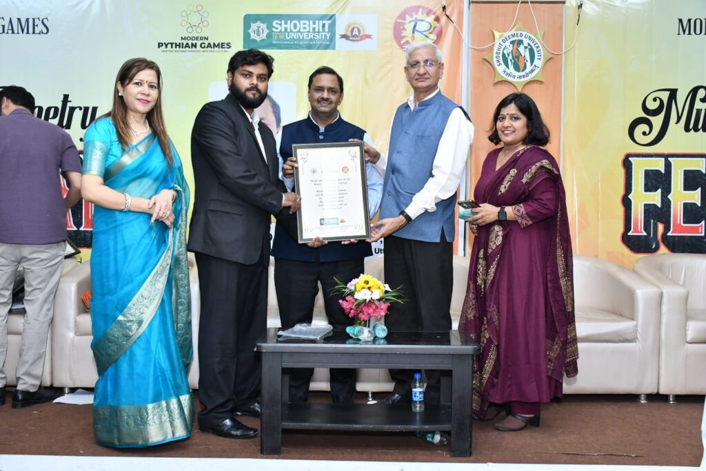 शुक्रवार को शोभित विश्वविद्यालय में मॉडर्न पाइथन गेम्स द्वारा म्यूजिक एवम पोएट्री फेस्टिवल का आयोजन किया गया। कार्यक्रम का शुभारंभ विश्वविद्यालय के कुलपति प्रोफेसर डा0 वी0के0 त्यागी एवम मॉडर्न पाइथन गेम्स के संस्थापक विजेंद्र गोयल ने संयुक्त रूप से किया।