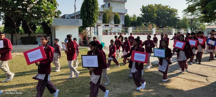 कक्षा 7 से कक्षा 10 तक के विद्यार्थियों ने पीजी कॉलेज फेरूपुर द्वारा आयोजित किए गए ‘पोस्टर मेंकिंग’ एवं ‘स्लोगन राइटिंग’ प्रतियोगिता में भाग लिया। मंच संचालन विद्यालय की शिक्षिका श्रीमती रेणु शर्मा द्वारा किया गया। कार्यक्रम को सफल बनाने में सीनियर विंग की इंचार्ज हेमलता पांडेय तथा जूनियर विंग की इंचार्ज कुसुम बाला त्यागी व तमाम शिक्ष​क—शिक्षिकाओं ने सहयोग किया।