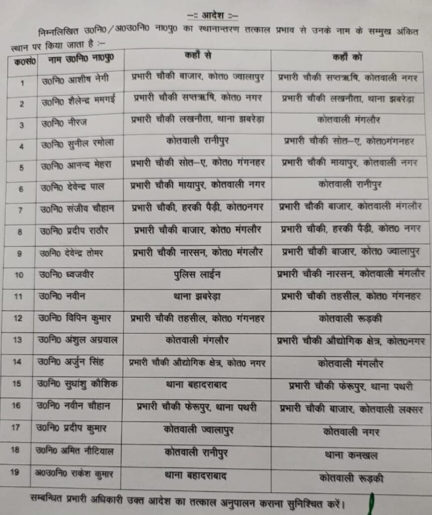 देर रात ssp ने कई चौकी प्रभारी बदले October 5, 2024October 5, 2024 naveen chauhan Listen to this article न्यूज़ 127। वरिस्ठ पुलिस अधीक्षक पृमेँद् डोबाल ने हरिद्वार में कई सब इंस्पेक्टर के तबादले किये है। इनमें कई पुलिस चौकी प्रभारी भी शामिल है। एसएसपी ने तबादला किए गए सभी पुलिसकर्मियों को अपने नबीन तैनाती पर कार्य बाहर संभालने के निर्देश दिए हैं।