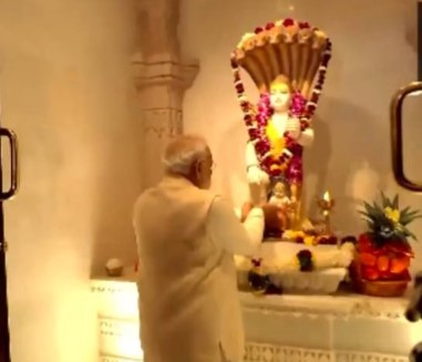 यहां पहुंचने पर प्रधानमंत्री नरेंद्र मोदी ने सबसे पहले सप्त ऋषि मंदिर, फिर शेषावतार मंदिर और अन्नपूर्णा मंदिर में दर्शन किये। इसके बाद रामलला के दर्शन पूजन करेंगे। दर्शन के बाद मंदिर के शिखर पर ध्वजारोहण करेंगे।