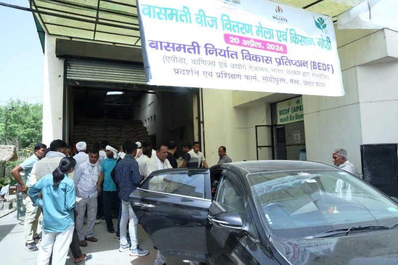 मेरठ। बासमती निर्यात विकास प्रतिष्ठान के द्वारा शनिवार को बीज वितरण मेला एवं किसान गोष्ठी का आयोजन किया गया। मेले के पहले ही दिन करीब एक हजार किसानों ने 60 लाख रूपये कीमत से अधिक का बीज खरीदा जो कि रिकार्ड बन गया। मेले के माध्यम से बासमती के डीएनए प्रमाणित बीज बासमती निर्यात विकास प्रतिष्ठान के द्वारा किसानों को दिए गए।
