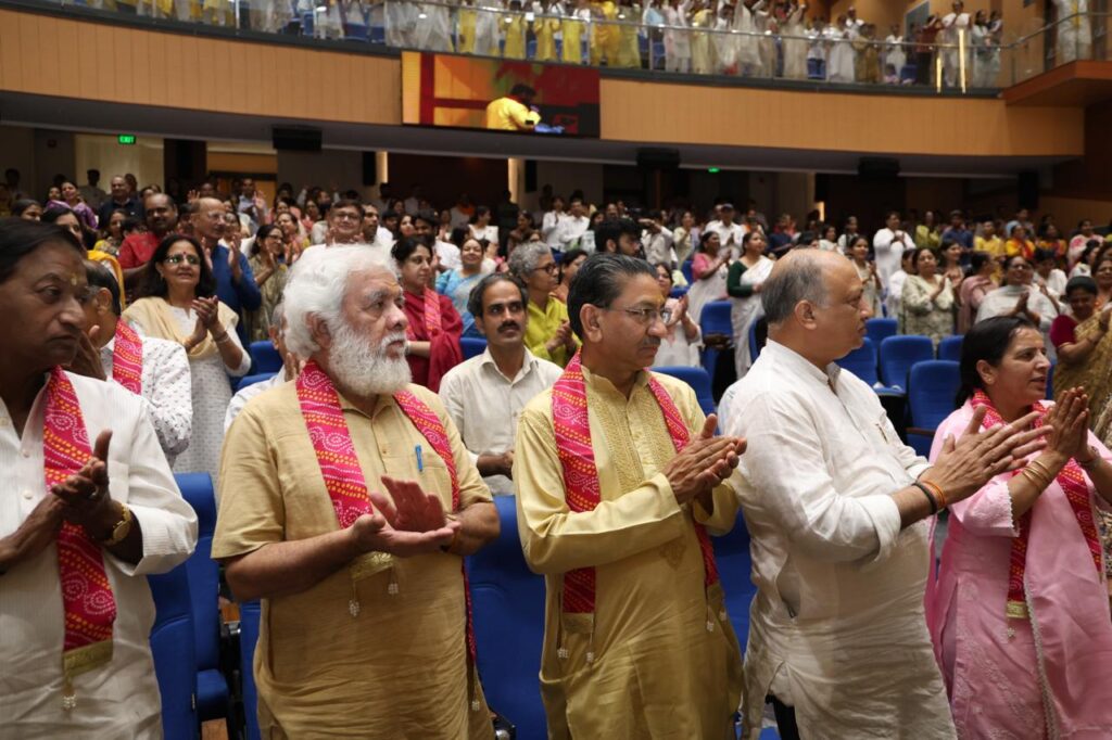 कार्यक्रम के दौरान आश्रम की सुर साधक मंडली—डॉ. संजय अन्डूरकर, सुश्री ख्याति, करण मल्होत्रा, आस्तिक सिन्हा अस्थाना, प्रेषा रावत एवं सचिन—द्वारा प्रस्तुत मधुर भजनों ने पूरे सभागार को कृष्णमय बना दिया। श्रद्धालु भक्ति में डूबकर झूम उठे।