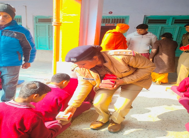 इस दौरान प्रभारी सिटी कोतवाली एवं अन्य पुलिस ऑफिसर द्वारा नन्हें बच्चों को मिष्ठान वितरित कर आत्मीय रूप से उनके और करीब आने की सफल कोशिश की गई।