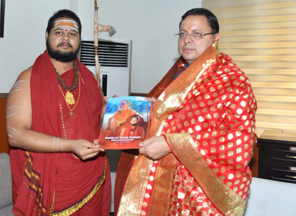 उन्होंने मुख्यमंत्री को 02 व 03 जुलाई, 2023 को श्री शारदाा पीठम ऋषिकेश में आयोजित शुभ गुरू पूजा कार्यक्रम में प्रतिभाग करने का भी आमंत्रण दिया।