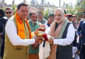 मुख्यमंत्री पुष्कर धामी ने गृह मंत्री अमित शाह को भेंट की गंगाजलि