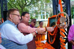 मुख्यमंत्री पुष्कर सिंह धामी की कलाई पर बांधी राखी