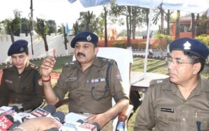 त्यौहारों को सकुशल संपन्न कराने को पुलिस ने निकाला फ्लैग मार्च