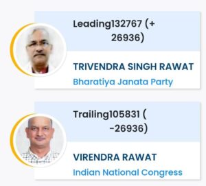 त्रिवेंद्र सिंह रावत ने ली 1 लाख 43 हजार वोट की लीड