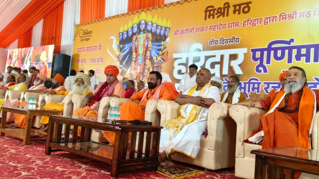 उत्तरी हरिद्वार स्थित प्रख्यात धार्मिक संस्था मिश्री मठ में पंचदिवसीय पूर्णिमा एवं देवभूमि रजत महोत्सव के तृतीय दिवस भव्य संत समागम का आयोजन किया गया। संत समागम का शुभारंभ संतों द्वारा दीप जलाकर किया गया। अध्यक्षता अखाड़ा परिषद अध्यक्ष श्रीमहंत रविंद्रपुरी महाराज एवं संचालन महामंडलेश्वर स्वामी हरिचेतनानंद महाराज ने किया।